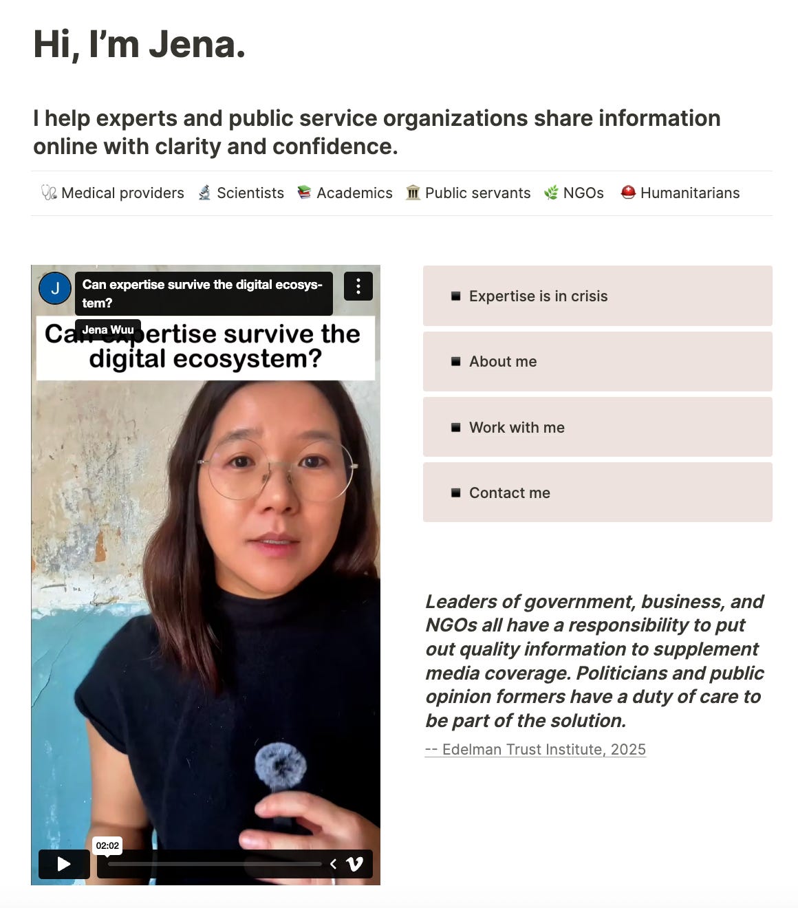 Building a personal body of work – through long-form writing, speaking on camera, or curating articles – allows experts to maintain agency and presence amid professional precarity. It helps them build continuity beyond any single role, while contributing to the public discourse about their field.